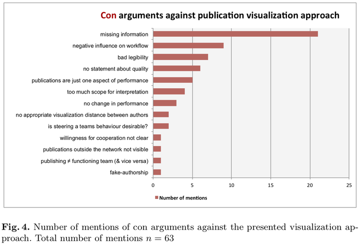 In large-scale research projects active management of the cooperation process is necessary, e.g. to ensure systematic transfer of knowledge, alignment of research goals, or appropriate dissemination of research efforts. In a large scale research-cluster at the RWTH Aachen University a cybernetic management approach is applied. As a planned measure, publishing efforts (i.e. bibliometric data) will be visualized on a social software platform accessible by researchers and the steering committee. But do researchers agree with the chosen style of visualization of their publications? As part of a user centered design, this paper presents the results of an interview study with researchers (n=22) addressing the usefulness and applicability of this approach. As central findings arguments for using the publication visualization are identified such as enabling retrospective analysis, acquiring new information about the team, improvement in dissemination planning, but at the same time contrasted by arguments against this approach, such as missing information, a possibly negative influence on workflow of researchers, and the bad legibility of the visualization. Additionally requirements and suggested improvements are presented.